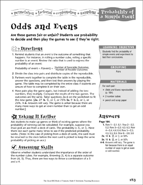 Odds And Evens Probability Of A Simple Event Printable Games And Puzzles Lesson Plans And Ideas